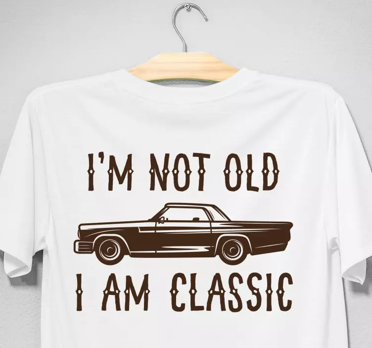 Poročilo: T4519Ta dizajn prikazuje starinski avto ob igrivem besedilu, ki poudarja humorno izjavo o staranju. Popolnoma zajame nostalgično vzdušje, hkrati pa se dotika družinskih dinamike, kar ga naredi idealnega za trenutke povezovanja med očetom in sinom.
