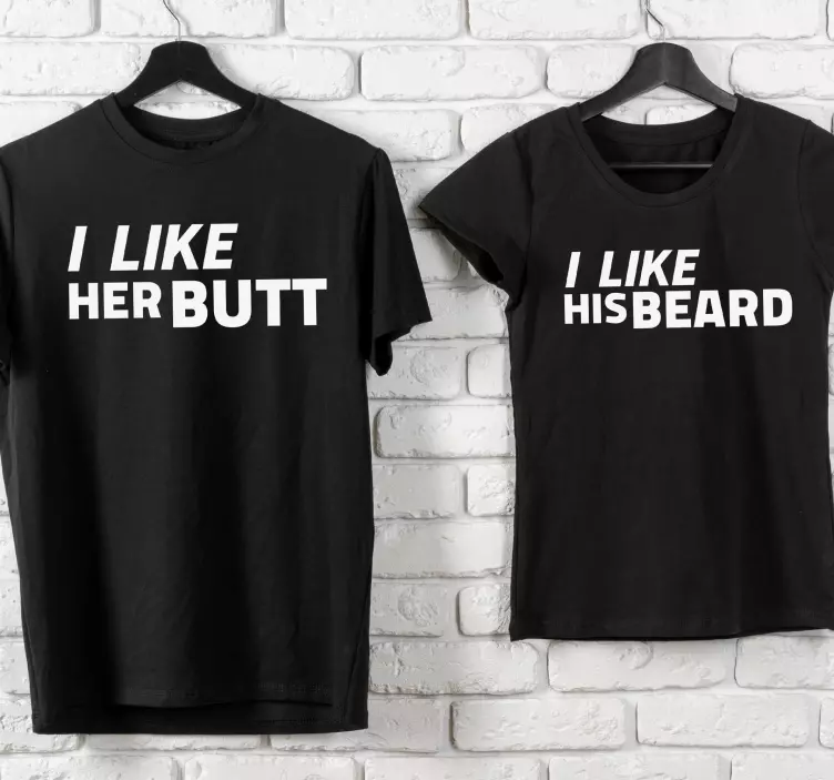 Odkrijte naše Couple humor shirts majice za pare, ki so zasnovane z mislijo na tiste, ki se radi smejijo skupaj! Z zabavnimi in domiselnimi motivi, ki vključujejo všeč, zadnjico in brado, te majice prinašajo kanček humorja v vsakdanjik. Enobarvni dizajn v črni barvi zagotavlja, da se lahko ujemate s svojim partnerjem, medtem ko vas smešne besedne igre spomnijo, kako pomemben je smeh v razmerju!