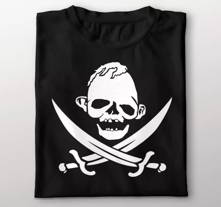 Odkrijte edinstveno Creepy pirate skull majico, ki združuje temačno privlačnost piratskega sveta in noči čarovnic. Zasnova te majice vključuje fascinantno ilustracijo piratske lobanje, ki se prepleta z značajem lenobe in meči, kar ustvarja nepogrešljiv kos oblačila za vse ljubitelje avantur. Ta majica je popolna izbira za vse, ki želijo izraziti svojo edinstvenost in ljubezen do filmov s piratsko tematiko!