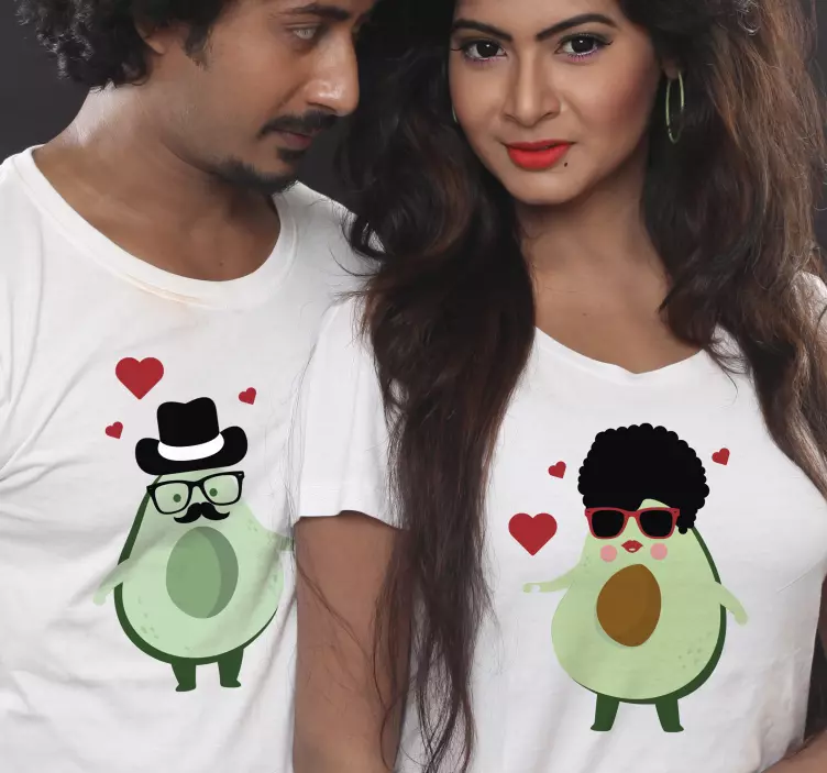 Odkrijte našo čudovito kolekcijo Cute avocado couple majice za mamo in hčerko, ki združuje smešne in ljubke elemente v enem samem dizajnu. Ti ujemajoči se majici prikazujeta očarljiva avokada, ki nosita srčna sončna očala in klobuke, obdarjena z brki, kar ustvarja pravo zabavo in humor. Ta edinstven par avokadov je popoln simbol ljubezni med mamico in njeno deklico, kar bo zagotovo pritegnilo poglede vseh!