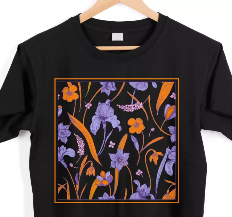 Odkrijte čarobnost narave s Floral pattern elegance majico, ki združuje eleganco in udobje. Ta čudovita majica je okrašena s slikovitimi ilustracijami krokusov, cvetov in raznobarvnih rož, ki cvetijo v oranžnih in vijoličnih tonih. Grafika in oblikovanje so skrbno zasnovani, da odražajo čudovitost narave in cvetlične umetnosti. S svojo barvito podobo prinaša veselje in svežino v vsakdanjik, hkrati pa je izjemno udobna za nošenje.
