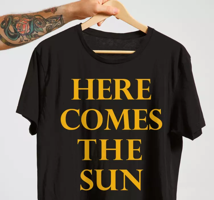 Majica Here comes sunshine prinaša sončen in optimističen vibe, ki ga potrebujete v svoji garderobi! S svojim moderno grafičnim dizajnom, ki združuje besedila in motivacijske elemente, ta majica izžareva energijo in pozitivnost. Barvna kombinacija črne in rumene vam omogoča, da izstopate, medtem ko vas glasba in glasbenik spominjata na vaše najljubše melodije. Ta krepko oblikovana majica je idealna za vsakodnevno nošenje, saj združuje udobje in eleganco.