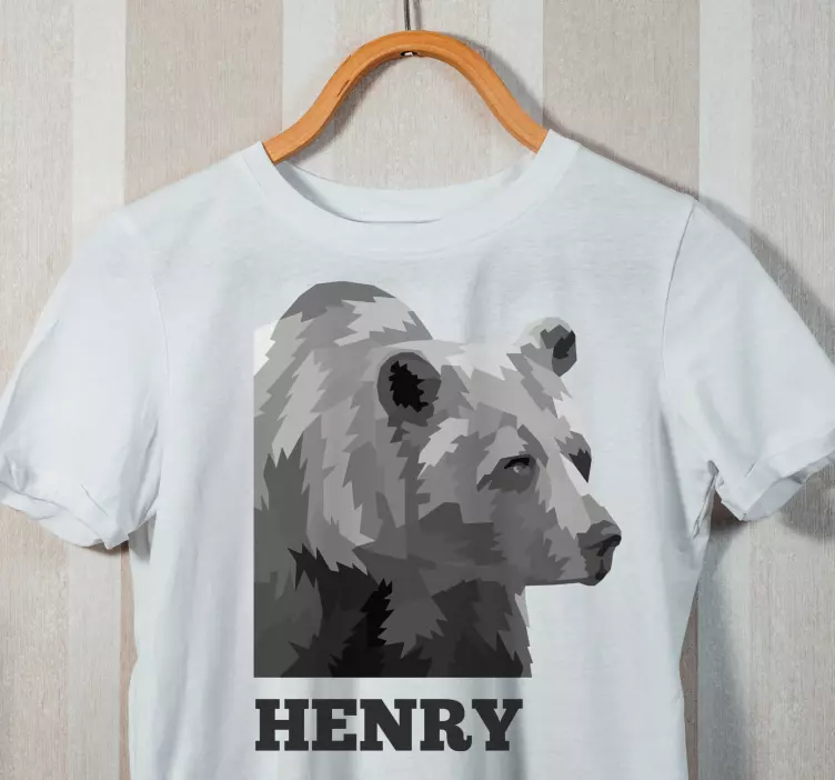 Poročilo: T4983Ta dizajn prikazuje medveda v geometrijskem slogu, kar predstavlja edinstveno upodobitev. Ime 'Henry' spremlja žival, kar ustvarja osebni pridih. Sive tone dodajajo sodoben element, kar ga naredi privlačnega za široko občinstvo.