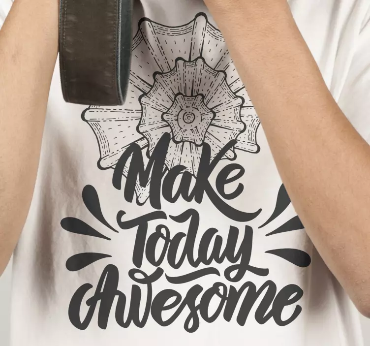 Poročilo: T5322Ta dizajn vsebuje dinamično besedilo, ki spodbuja pozitivnost in motivacijo. Igriva tipografija je dopolnjena s stilizirano obliko školjke, kar ustvarja vzpodbudno in živahno vzdušje. Idealno za sproščeno obleko, izraža veselo duhovnost.