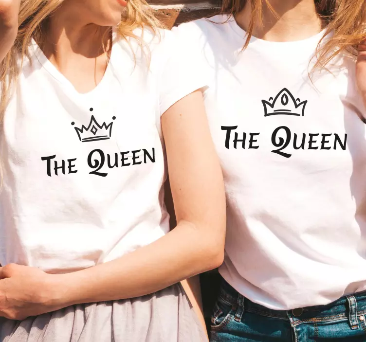 Poročilo: T4073Ta slika prikazuje srčen trenutek med mamo in hčerko, ki nosita usklajene obleke, na katerih ponosno piše 'The Queen.' Igrajča zasnova, poudarjena s kronami, simbolizira njuno posebno vez in skupne trenutke veselja.