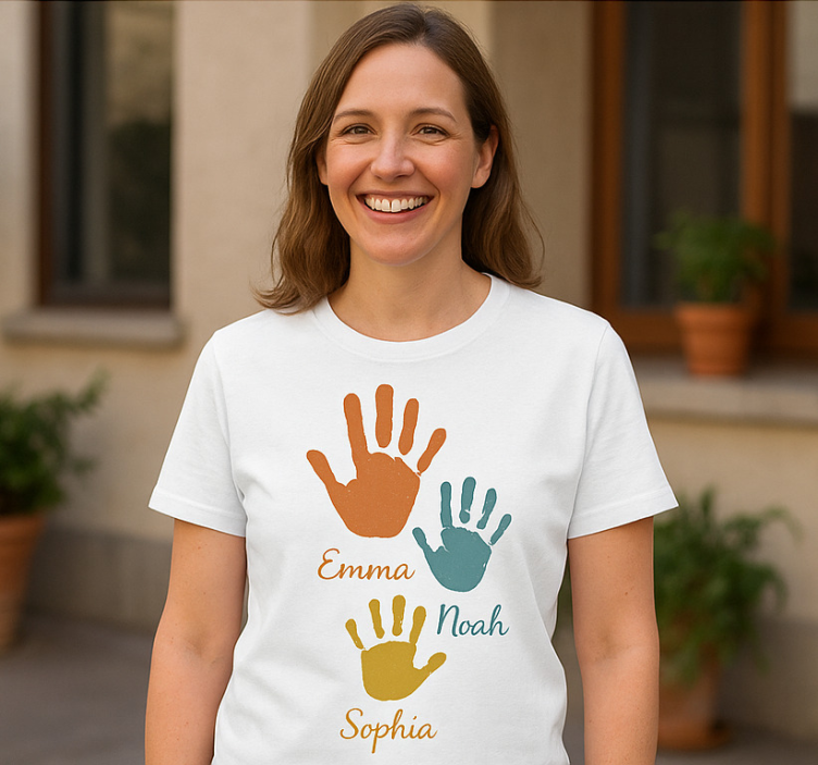 Izberite Personalized handprints design majico in izrazite svojo edinstvenost! Ta majica ni le oblačilo, ampak pravi umetniški izdelek, ki ga lahko prilagodite svojim željam. Njeni ročni odtisi prinašajo čustva in spomine, ki vas bodo spremljali vsak dan. Uživajte v prijetnem občutku na koži in se sprehodite s ponosom, saj boste s to majico zagotovo pritegnili poglede in navdušili svoje okolico. Vsaka majica je zasnovana z ljubeznijo in skrbnostjo, kar pomeni, da ni le modni kos, temveč tudi del vaše zgodbe!