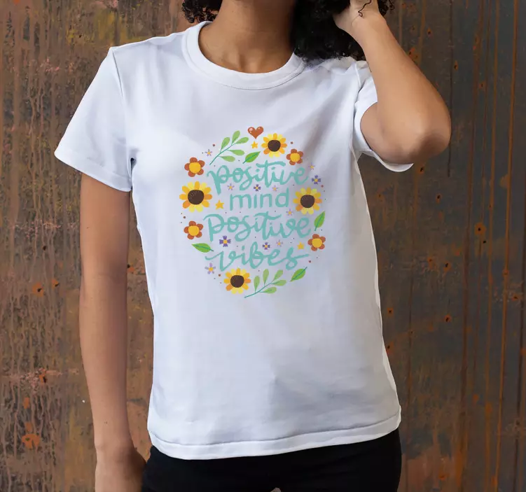 Odkrijte Positive mind vibes majico, ki prinaša sončne žarke in pozitivne vibracije v vaša oblačila! Njena edinstvena grafika, ki vključuje sončnice, rože in srce, je zasnovana tako, da vas navdihuje in spodbuja k čuječnosti ter pozitivnemu razmišljanju. Oblačilo je živahno in motivacijsko, kar ga naredi popolno izbiro za vsak dan, ko želite širiti dobre vibracije in uživati v naravi.