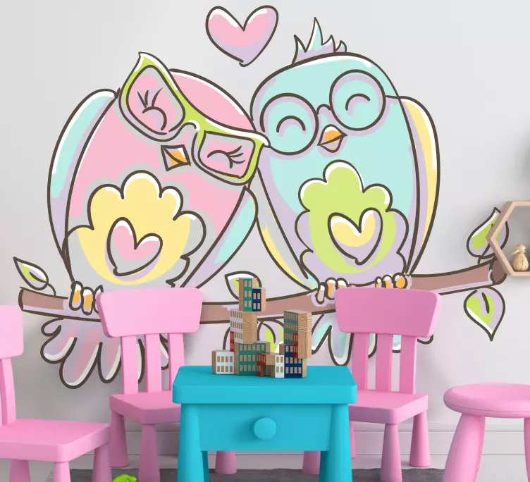 Obožujte ptice in iščete način, kako v svoj dom vnesti kanček ljubezni? Naša Adorable love birds nalepka ptica je popolna izbira! S čudovito ilustracijo sove in njenih prijateljev, ta srčkana nalepka prinaša srečo in ljubezen v vsak prostor. V roza in modri barvi, ta dizajn pritegne pozornost in ustvari prijetno vzdušje, kjerkoli ga postavite.