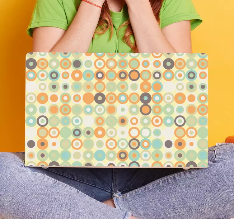 Odkrijte Barvit krožni vzorec nalepka za prenosnik, ki prinaša povsem nov nivo kreativnosti in zabave v vaš digitalni svet! Ta edinstvena nalepka se ponaša z geometrijskim dizajnom, ki vključuje pisane kroge v retro slogu 70-ih. Njena barvitost in dinamičnost bosta zagotovo pritegnila pozornost in vnesla živahnost v vaš prenosnik. Uživajte v odlični barvni intenzivnosti, ki se odlično ujema z vsako površino!