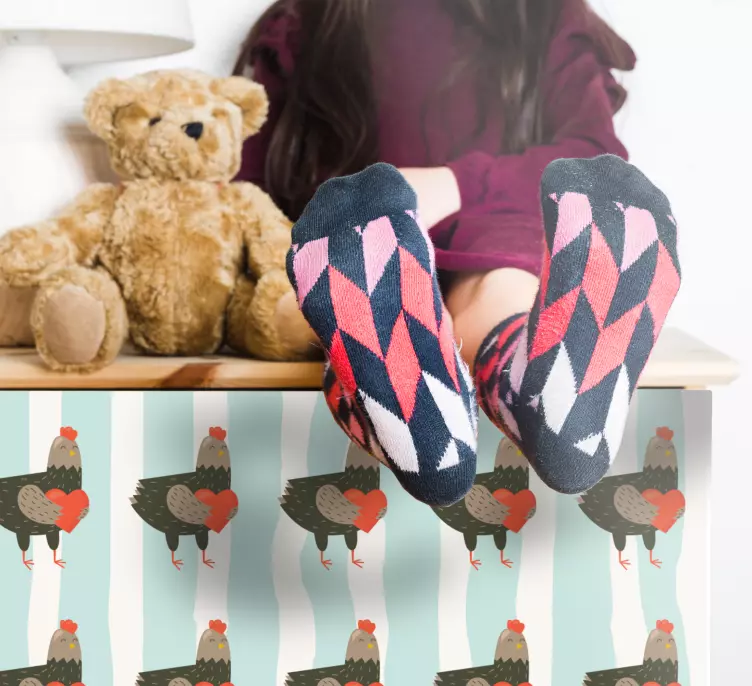 Bela in modra črtasta oblika s petelinimi nalepkami za pohištvo