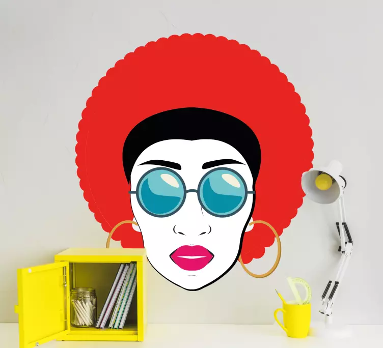 Odkrijte edinstveno Bold afro portrait nalepko živali, ki prinaša barvitost in ženstvenost v vsak prostor. Ta čudovita ilustracija ženske z afro pričesko in sončnimi očali bo očarala vsakogar! Barviti dodatki in stiliziran portret dodajajo kanček ustvarjalnosti in živahnosti, ki jo lahko enostavno vključite v vašo dekoracijo.