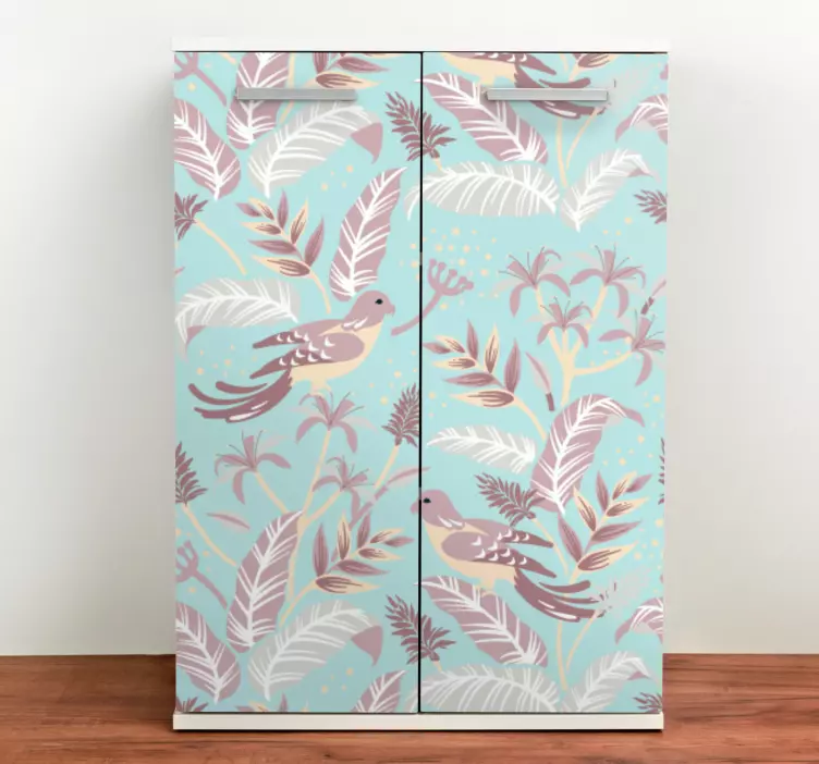 Uživajte v čarobnosti narave z Botanical avian emblem nalepko za pohištvo, ki prinaša eksotične ptice in papige v pastelnih barvah neposredno v vaš dom. Ta čudovita nalepka je okrašena z raznolikimi listi in cvetličnimi motivi, kar ustvarja tropsko vzdušje, polno življenja. Idealna je za dekoracijo pohištva in daje vašemu prostoru edinstven pečat, ki ga bodo oboževali vsi obiskovalci!