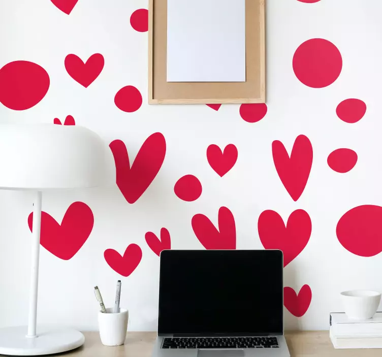 Odkrijte čarobnost z Charming heart shapes ljubezenska nalepka, ki prinaša igrivost in romantiko v vaš prostor. Zasnovana s srčastimi motivi, pikami in barvitimi dekorativnimi elementi, ta nalepka doda edinstven pečat vsakemu ambientu. Njena živahna barvna paleta in privlačen dizajn zagotavljata, da bo vaša dekoracija izstopala in pritegnila poglede.