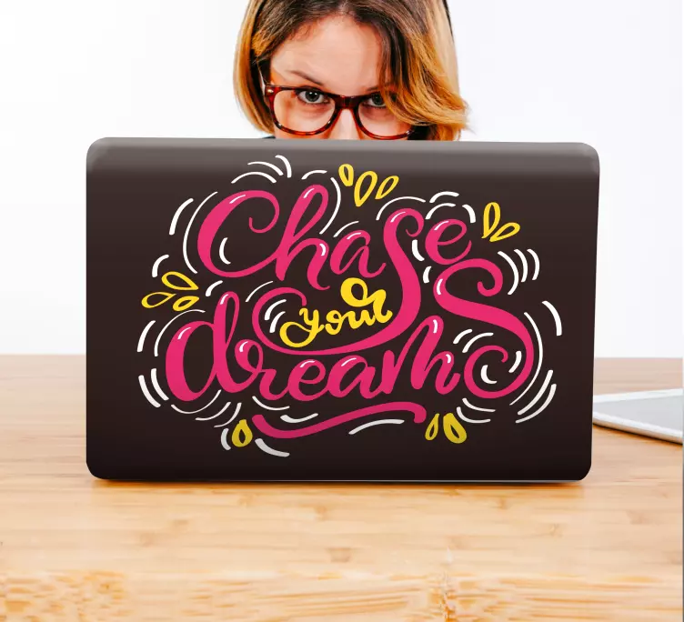 Namestitev Chase your dream nalepke za prenosnik je enostavna in hitra. Preprosto očistite površino prenosnika, odstranite zaščitni sloj in nalepko nežno pritisnite na želeno mesto. Uživajte v čudovitem videzu in naj vas ta nalepka vsak dan spominja na vaše sanje!