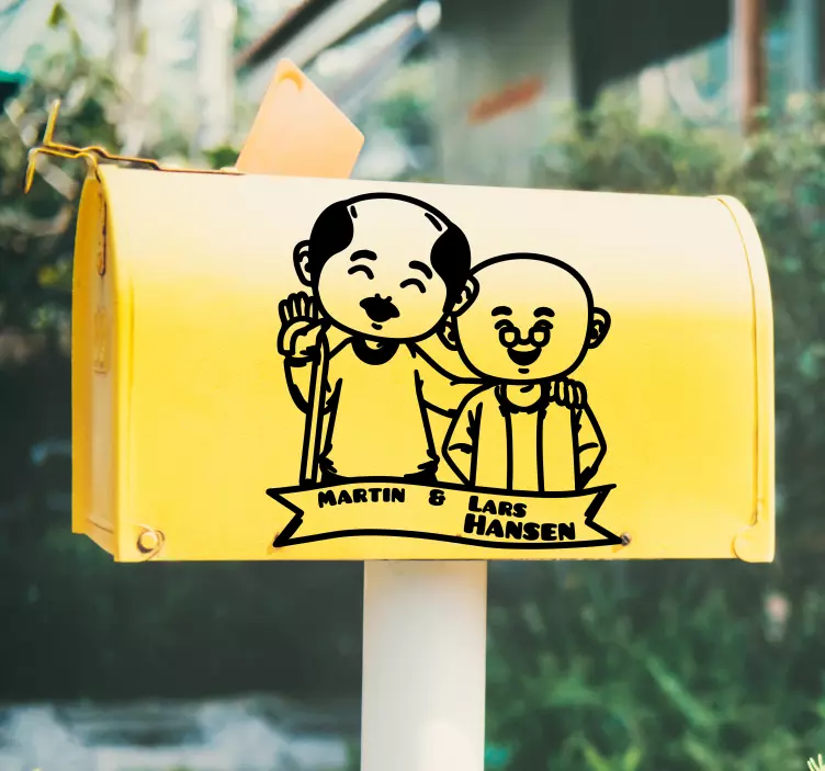 V vašem domu lahko ustvarite prijetno in veselo vzdušje z Cheerful character pair nalepka za dom. Ta nalepka se ponaša z edinstvenim dizajnom, ki vključuje poštni predal, moške in prilagodljive znake, ki prinašajo prijaznost in ljubezen v vsak prostor. Njihov muhast karakter dodaja posebno noto, ki bo zagotovo navdušila obiskovalce vašega doma!