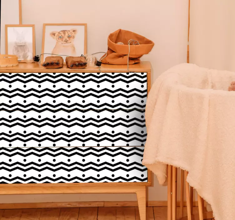 Uživajte v modernem in elegantnem videzu vašega pohištva z našo Chevron motif style nalepko za pohištvo. Ta črno-beli cikcak geometrijski dizajn prinaša svežino in stil v vsak prostor. Ne glede na to, ali želite osvežiti dnevno sobo, spalnico ali delovni prostor, ta nalepka bo zagotovo pritegnila poglede in dodala pridih sodobnosti. Z njeno preprosto namestitvijo lahko hitro in enostavno spremenite izgled svojih površin!