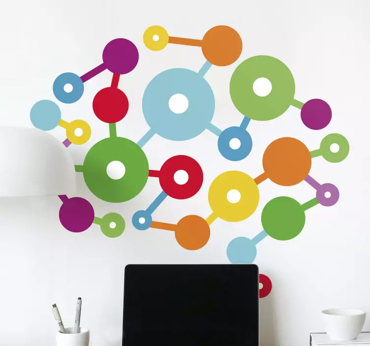 Ustvarite edinstveno vzdušje v svojem prostoru z Colorful circular links geometrijska nalepka, ki prinaša svežino in kreativnost. Ta moderni dizajn združuje geometrijske vzorce, ki posnemajo nevronske povezave v naših možganih, kar daje občutek dinamičnosti in živahnosti. Barviti elementi so zasnovani tako, da pritegnejo pozornost in dodajo značaj vašim stenam, hkrati pa so enostavni za uporabo, kar vam omogoča, da v trenutku transformirate svoj prostor.