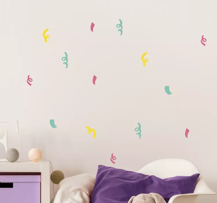 Odkrijte Colorful curved shapes dekorativna nalepka, ki prinaša igrivost in modernost v vaš prostor! Ta čudovita dekorativna nalepka je oblikovana z barvitimi krivuljami in konfeti, kar ustvarja edinstveno vzdušje v vsakem okolju. Zvit dizajn in živahne barve bodo navdušili tako otroke kot odrasle, zato je idealna izbira za vsak dom ali pisarno.