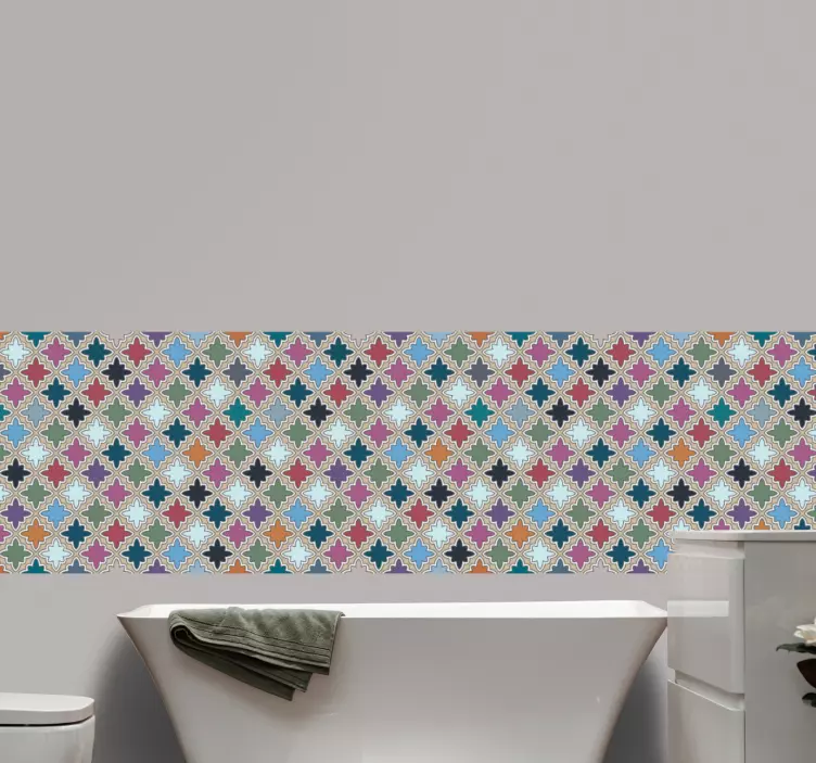 Pozdravljeni! Predstavljamo vam Colorful geometric tiles dekorativna nalepka, ki bo vašo notranjost obogatila z živahnimi geometrijskimi vzorci. Barvite ploščice, ki jih odlikujejo čudoviti vzorci in elegantne meje, bodo dodale edinstven pečat vsakemu prostoru. Oblikovanje te nalepke je zasnovano tako, da pritegne pozornost in ustvari prijetno vzdušje, kjerkoli jo namestite. Ne glede na to, ali želite osvežiti svoj dom ali dodati barvit pridih pisarni, bo ta dekorativna nalepka prava izbira!