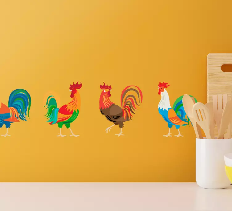 Poročilo: A49028Živahna razstava, ki prikazuje različne pisane peteline, vsak edinstven v oblikovanju in stilu. Ta zbirka dodaja igriv in živahen pridih prostoru, kar jo naredi popolno za kuhinje ali jedilnice.