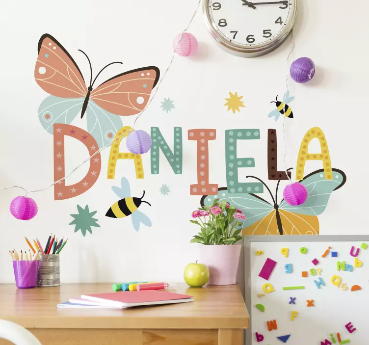 Naša Customized name butterflies nalepka za dojenčka prinaša v svet vašega malčka barvitost in veselje. Z očarljivim dizajnom metuljev in prilagojenim imenom, ta nalepka združuje mladosten duh in naravne elemente, kar jo dela popolno izbiro za dekoracijo otroške sobe. Vsak metulj je skrbno oblikovan, da doda kanček zabave in sreče v prostor, kjer vaš dojenček raste in se razvija.