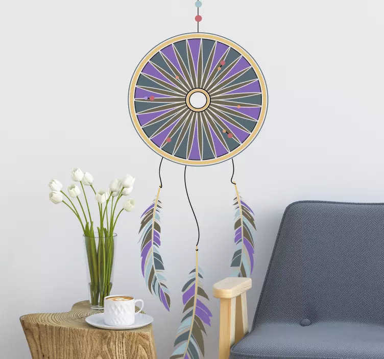 Odkrijte čarobnost našega Dream catcher concept dekorativna nalepka, ki prinaša edinstveno in očarljivo vzdušje v vsak prostor. Ta lovilec sanj vsebuje čudovito ilustracijo v vijoličnih odtenkih, ki se prepleta z geometrijskimi oblikami in boemskim slogom. Njena barvita zasnova, obogatena s perjem, bo zagotovo pritegnila poglede in dodala osebni pečat vašemu domu.