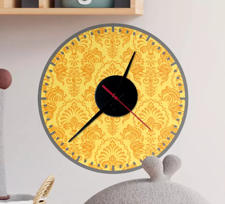Odkrijte čarobnost Elegant floral timepiece ura z nalepkami, ki bo popestrila vaš prostor! Njena damast grafična podoba s cvetličnim vzorcem v rumeni barvi daje občutek elegance in stila. Okrogla oblika nalepke ne le, da izgleda čudovito, temveč tudi učinkovito združuje funkcionalnost in estetiko. Dodajte kanček umetnosti v svoje življenje s to fascinantno uro!