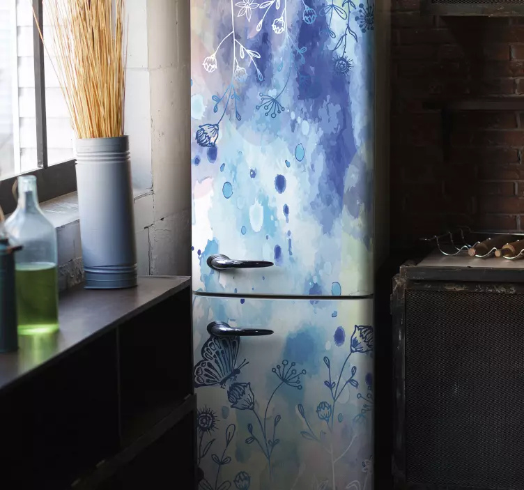 Odkrijte čarobnost narave s Floral butterfly motif nalepko za hladilnik, ki prinaša barvit akvarelni dizajn z nežnimi cvetličnimi motivi in elegantnimi metulji. Njena modra barva in brizganje akvarelne tehnike ustvarjata edinstveno vzdušje, ki bo osvežilo vaš hladilnik in dodalo pridih umetnosti v vaš dom. Ta nalepka ni le dekoracija, temveč pravi umetniški dodatek, ki vas bo navdihoval vsak dan.
