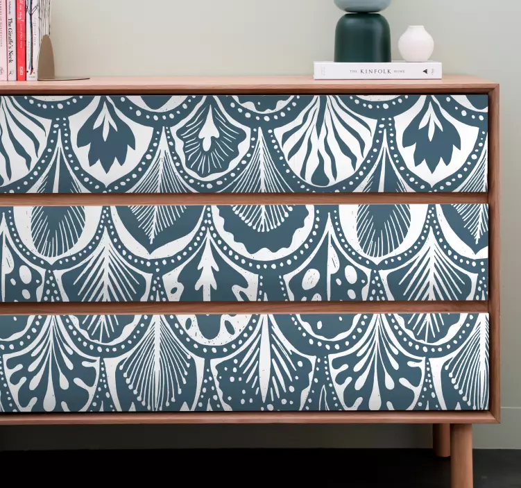 Odkrijte čarobnost našega Floral print style dekorativna nalepka, ki bo vašemu prostoru dodala svežino in eleganco. Z edinstvenim ribja luska vzorcem v modri barvi, ta dekorativna nalepka prinaša cvetlične motive, ki popestrijo pohištvo in ustvarjajo prijetno atmosfero. Njena tekstura in barvna intenzivnost sta zasnovana tako, da ne odsevata svetlobe, kar omogoča enostavno vključitev v vsak prostor.