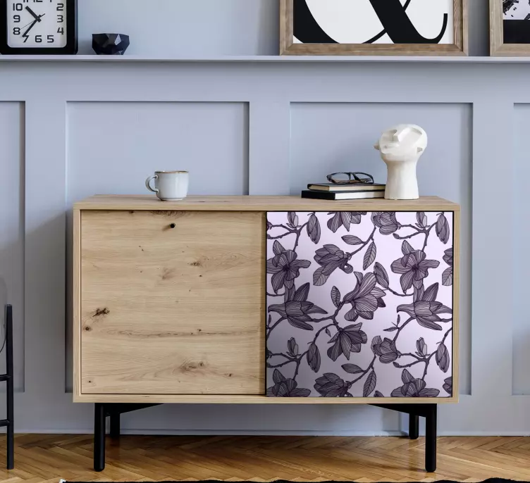 Graceful bloom component nalepka za pohištvo je čudovit dodatek za vsak dom, ki prinaša eleganco in naravo v vaše notranje prostore. Ta cvetlični dizajn, ki vključuje magnolije in druge rože, je zasnovan tako, da obogati vaše pohištvo in ustvari harmonično okolje. Njena estetika se odlično prilega domačemu slogu in prinaša občutek miru ter svežine v vaš dom.
