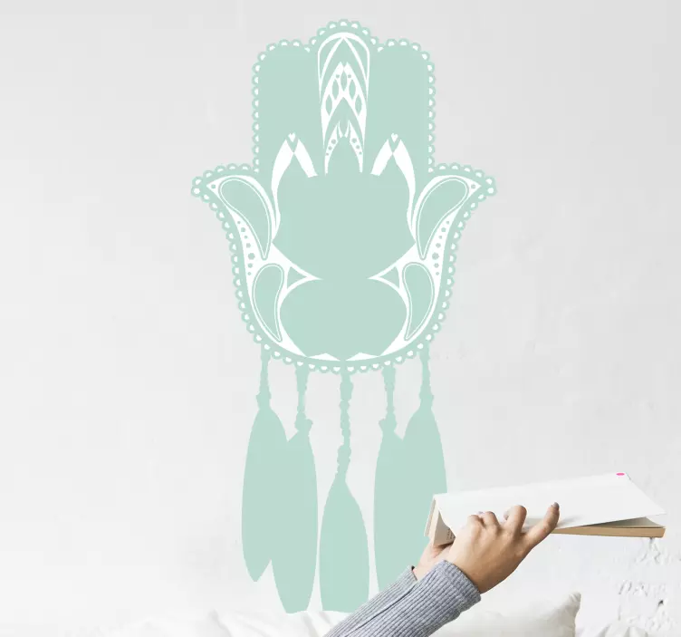 Odkrijte edinstveno Graceful botanical emblem dekorativna nalepka, ki prinaša eleganco in umetniški pridih v vaš prostor. S svojo zasnovo, ki vključuje lovilec sanj, roko, cvetje in elemente narave, ta nalepka s turkiznimi odtenki ustvarja prečudovit vizualni učinek, ki očara vsakogar. Njena eleganca in umetniški slog bosta zagotovo pritegnila pozornost in popestrila vsak kotiček vašega doma.