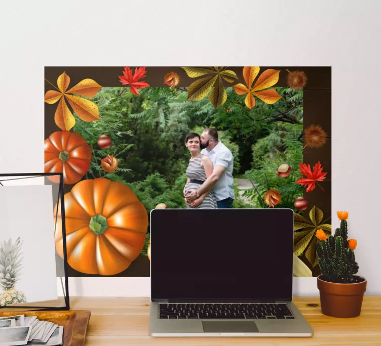 Vabimo vas, da odkrivate čarobnost našega jesenskega zelenjavnega aranžmaja z nalepkami živali, ki vas popelje v svet barv in narave. Ta edinstven dizajn vključuje buče, listje in druge jesenske elemente, kar ga naredi popoln za praznovanje noči čarovnic. S fotografijami in slikami, ki so po meri izdelane, aranžma prinaša občutek jesenskega pada in žetve, kar ga dela idealnega za sezonsko dekoracijo vašega doma.