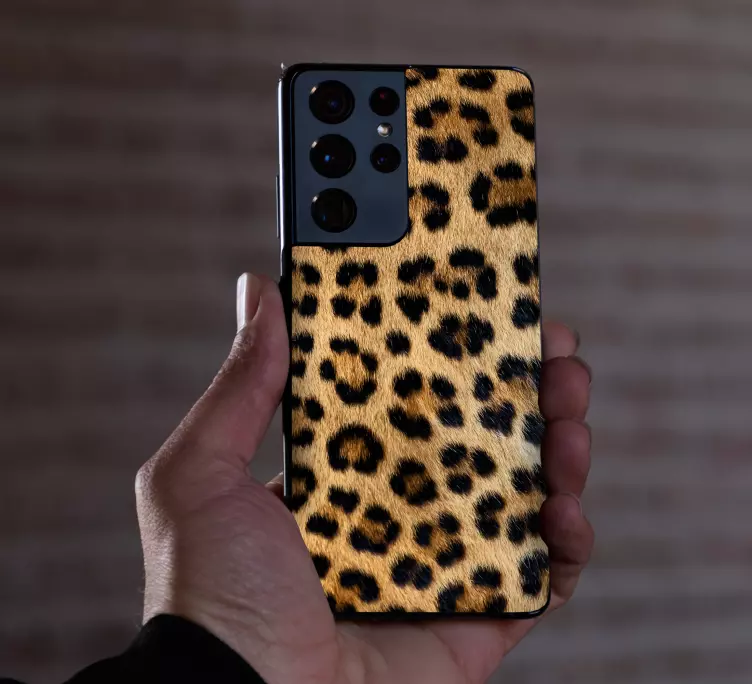 Leopard skin cover nalepka za SamsungOdkrijte edinstveno Leopard skin cover nalepko za Samsung, ki prinaša čar živalskega tiska na vaš pametni telefon! Ta grafično oblikovana nalepka posnema videz leopardskega krzna in tako doda vašemu telefonu trendovski in divji pridih. Z odlično barvno intenzivnostjo in satenastim zaključkom je to popolna izbira za vse, ki želite izstopati!