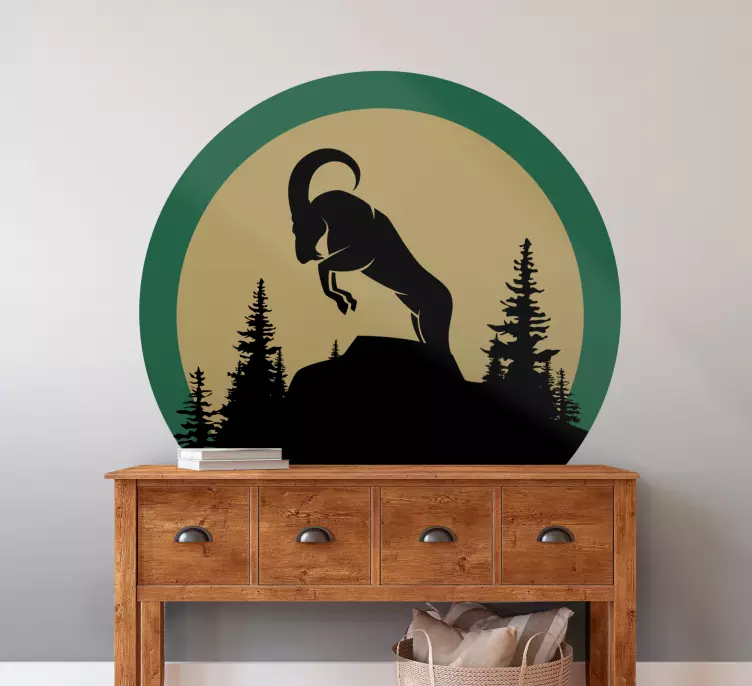 Odkrijte edinstveno Mountain goat outline nalepko živali, ki vas popelje v čudovit svet narave. S svojo krožno obliko, ki vključuje mogočne gore, drevesa in skakajoče koze, ta silhueta prostoživečih živali prinaša občutek svobode in svežine. Idealen dodatek za vsak prostor, ki ga obkroža narava!
