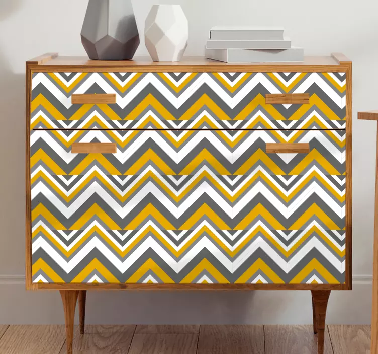 Odkrijte našo nalepko za pohištvo chevron overlay, ki prinaša sodoben in geometrijski dizajn v vaš prostor. S cikcak vzorcem in trikotniki v rumeni in sivi barvi, ta nalepka za pohištvo dodaja nordijski pridih in eleganco vsakemu kosu pohištva. Ne glede na to, ali želite osvežiti staro omaro ali dodati unikaten detajl na mizo, je ta izdelek idealen za vas!