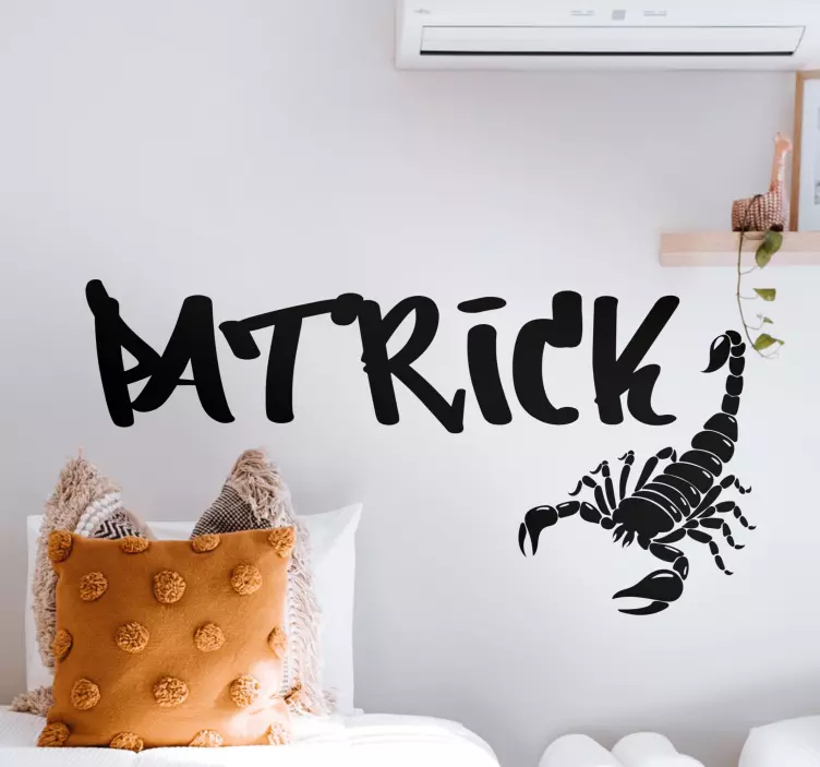 Odkrijte edinstveno Personalized scorpion design nalepko, ki prinaša umetniški pridih v vaš dom! Ta črna nalepka z grafitnim dizajnom škorpijona in vašim imenom po meri je prava izbira za ljubitelje ulične umetnosti. Njena silhueta se lepo prilega vsakemu prostoru in prinaša občutek dinamike ter kreativnosti, ki ga prinaša graffiti stil. Uživajte v nadvse prilagodljivem stenskem dekorju, ki bo osvežil vaše okolje!