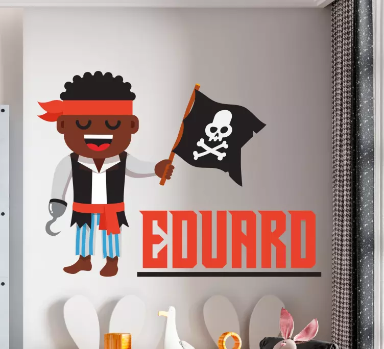 Pirate character quest nalepka za otroke je čudovita in zabavna ilustracija, ki prinaša svet piratov neposredno v otroške sobe! S slikovitim dizajnom, ki vključuje fanta pirata, zastavo in ime po meri, je ta nalepka prilagodljiva in idealna za popestritev prostora vašega otroka. Z njeno pomočjo lahko ustvarite izobraževalno in zabavno okolje, ki spodbuja domišljijo in igro. Otroci bodo navdušeni nad tem, kako lahko njihov prostor postane pravi piratski svet!