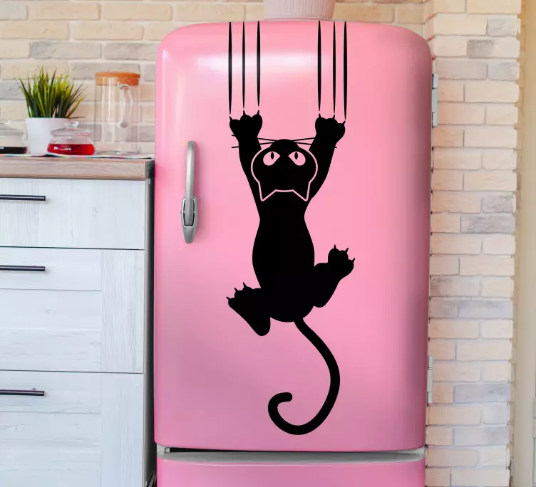 Namestitev Playful cat climbing nalepke za hladilnik je enostavna in hitra! Preprosto odstranite zaščitni sloj in nalepko previdno pritrdite na gladko površino vašega hladilnika. Za najboljše rezultate je priporočljivo, da površino predhodno očistite. Nalepka se enostavno prilagodi in je primerna za enkratno uporabo, kar pomeni, da bo vaša kuhinjska dekoracija ostala popolna in brez napak!