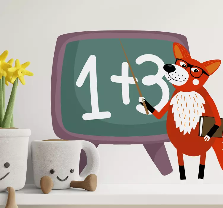 Odkrijte čarobnost učenja z našo Playful teaching fox nalepko za otroke, ki prinaša igrivost in ustvarjalnost v vsak razred. Ta čudovit dizajn prikazuje simpatično lisico, ki deluje kot učitelj v razredu, kjer se otroci učijo matematike na zabaven in interaktiven način. Risanka, ki oživlja divje živali, prinaša svetlo in prijazno vzdušje v otroške sobe ter spodbuja radovednost in ljubezen do učenja!