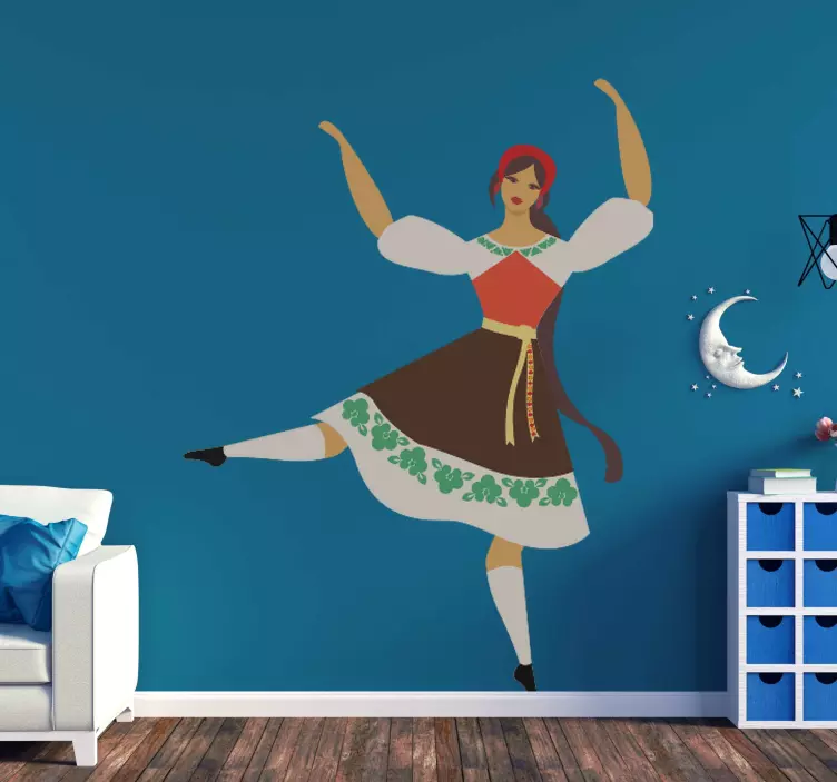 Ta nalepka je primeren za okrasitev katerega koli dela hiše in bo dodala čudovit umetniški učinek na prostor. Njegov čudovit dizajn je namenjen ljubiteljem plesa, njegova uporaba pa je zelo enostavna. Z lopatico jo postavite zelo gladko na želeni prostor. Nalepka je odstranljiva in ne bo puščala ostankov na površini. Izdelana je iz visokokakovostnega vinila, ki ne povzroča gub. Izberite primerno velikost glasbene folklorne nalepke in jo dodajte v košarico.