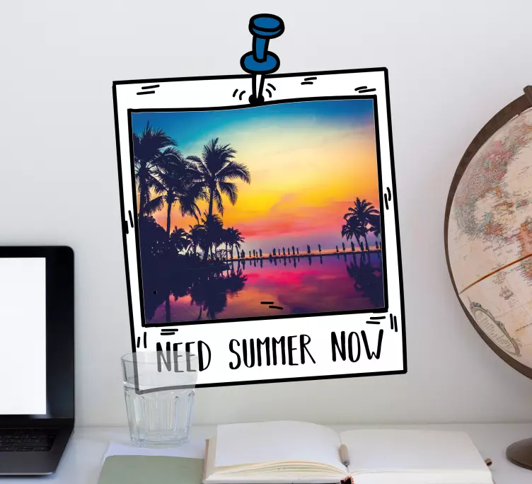 Vas prevzema poletno vzdušje? Poletni okvir pokrajine nalepka narave je prava izbira za vas! Ta čudovita nalepka z grafičnim dizajnom, ki prikazuje polaroidne fotografije plaže, sončnega zahoda in palm, vas bo popeljala v tople poletne dni. Vsak pogled na to nalepko vas bo spomnil na brezskrbne trenutke na plaži ob sončnem zahodu, kjer se lahko sprostite in uživate v naravi. Pokrajina, ki jo prikazuje, prinaša občutek miru in sreče ter ustvarja prijetno atmosfere v vsakem prostoru.