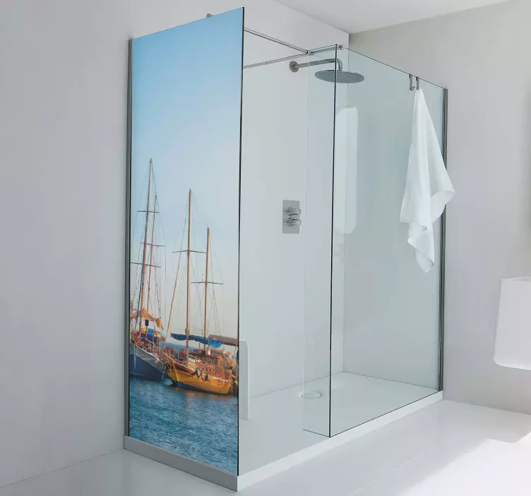 Uživajte v naravnem vzdušju morja s Sailing boats scene nalepko za tuš, ki prinaša čarobnost jadranja neposredno v vašo kopalnico. Ta edinstveni dizajn prikazuje čolne in pristanišča v slikovitem vodnem okolju, kar bo popestrilo vaš tuš. Z uporabo tople barvne palete in navtičnih motivov, nalepka za tuš ustvari sproščujoče vzdušje, ki vas spominja na brezskrbne trenutke na prostem med jadranjem. Ta izdelek ne le da služi kot okras, temveč vas tudi popelje na čudovito potovanje po morju vsak dan ob tuširanju.