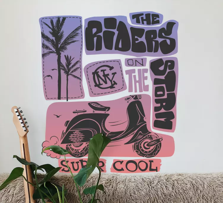 Odkrijte edinstveno Scooter palm trees nalepko za živali, ki prinaša poletje in veselje v vašo dom. Zasnova vključuje skuter, palme in glasbene motive, kar ustvarja popolno vzdušje za ljubitelje živali. Ta nalepka je kot nalašč za popestritev prostora, kjer se igrajo vaši ljubljenčki, saj ponuja živahen in igriv dizajn, ki pritegne pozornost.
