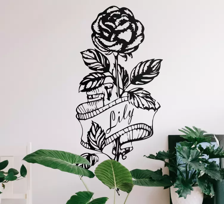 Skica vrtnice s stensko nalepko s cvetličnim trakom - to lahko okrasite na poljubnem prostoru, na steni, pohištvu, vratih itd.