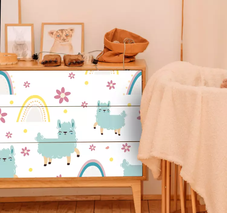 Bi radi spremenili videz svoje otroške sobe in menite, da bi bil dober začetek pohištvo? Zakaj ga ne okrasite z vinilnimi nalepkami? To je pohištvena vinilna nalepka s čudovitim in čarobnim dizajnom smešnega vzorca samorogov na belem ozadju in s čudovitimi mavričnimi vzorci, ki z veseljem napolnijo dekoracijo prostora in vsakega kosa pohištva na kraju. Ne razmišljajte dvakrat, ta nalepka je enostavno nanesti in je visoke kakovosti. Po odstranitvi ne pušča sledi in jo lahko dostavite na dom.