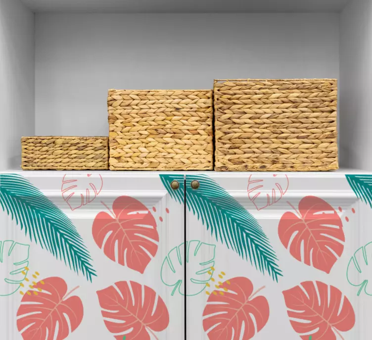 Odkrijte Tropical foliage motif dekorativna nalepka, ki prinaša tropski duh v vaš dom! Ta edinstven dizajn se ponaša z vibrantnimi listi in floro, kar ga naredi popolno izbiro za dekoracijo vašega pohištva. Čudovito barvito vzorčje bo obogatilo vsako notranjost in ji dodalo svežino ter življenjsko energijo.