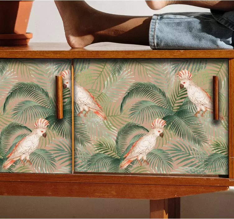 Vstopite v tropski raj z našo Tropical parrots and palms naravno nalepko, ki prinaša živahne barve in naravne vzorce v vaša notranja prostora. Zasnova te nalepke vključuje čudovite papige in listje, ki skupaj ustvarjajo občutek tropskega okolja, polnega življenja. Vsak detajl, od perja do pohištva, je skrbno zasnovan, da ustvari harmonično in sproščeno vzdušje. Občutite naravo na vsakem koraku!