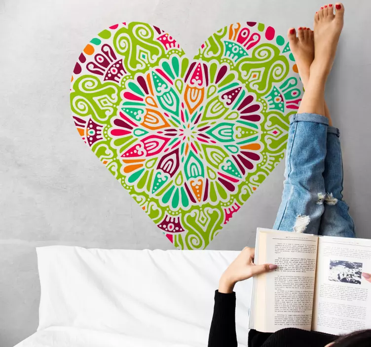 Odkrijte čarobnost naše Vibrant heart motif ljubezenska nalepka, ki vas bo očarala s svojim edinstvenim dizajnom. Ta ljubezenska nalepka prikazuje srce v obliki mandale, obarvano v živahnih in barvitih tonih, ki prinašajo veselje in toplino v vsak prostor. Njena grafična zasnova je zasnovana tako, da pritegne pozornost in ustvari prijetno vzdušje, kjerkoli jo postavite.