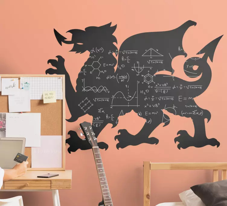 Poročilo: A51514Z osupljivo silhueto zmaja, okrašeno z matematičnimi simboli in enačbami, ta izjemen dizajn združuje fantazijo in akademsko znanje. Mitološko bitje stoji kot močan simbol, ki predstavlja moč in znanje, medtem ko zapleteni detajli dodajajo edinstven pridih vsakemu prostoru.