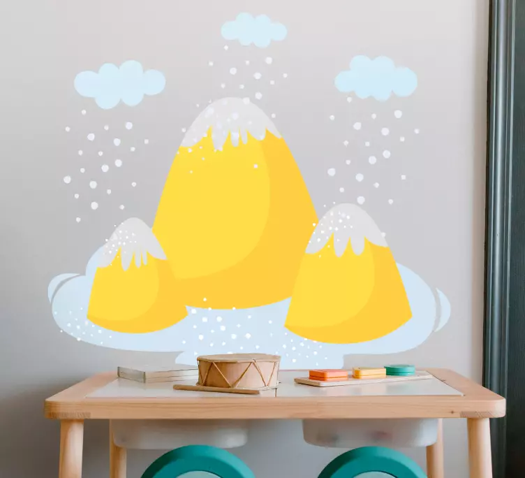 Odkrijte čarobnost narave z našo Yellow mountain peaks naravno nalepko, ki prinaša slikovit dizajn rumenih gorskih vrhov, obdanih z belimi oblaki in snežno pokritimi vrhovi. Ta ilustracija vas popelje v svet narave, kjer se prepletajo barve in oblike, ki ustvarjajo muhast in osvežujoč občutek v vašem prostoru.